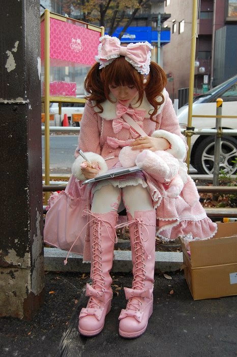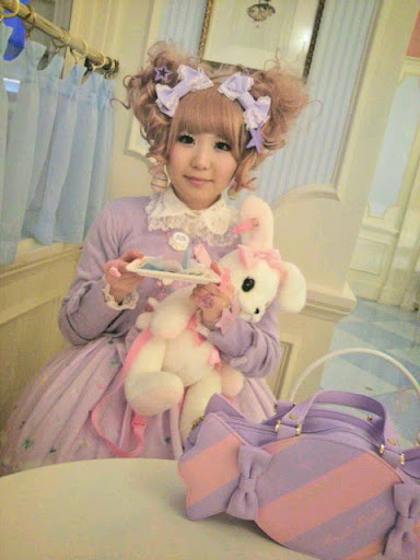 Modanın uygulayıcıları zamanla bu klasik tarzın dışına çıkıp yeni eklemelerle yukarıda bir kaçına değindiğim stillerle birlikte bi dolu stil yaratmışlar. Bu giysileri genel olarak fiyonklar ve çeşit çeşit danteller süslüyor. Özellikle çantalarda çocuksu figür ve çizgilerin kullanımı da çok yaygın. Bazıları abartmış ayıcıklı çantaların dışında ellerinde pelüş ayıcıklarla geziyorlar. :) Bununla birlikte daha klas ve daha sade olanları da var... Özellikle romantik gotik modeller çok hoş... Ben en iyisi sözü burada bırakıp fotoğraflara geçeyim. Görmek okumaktan daha etkili olacaktır.