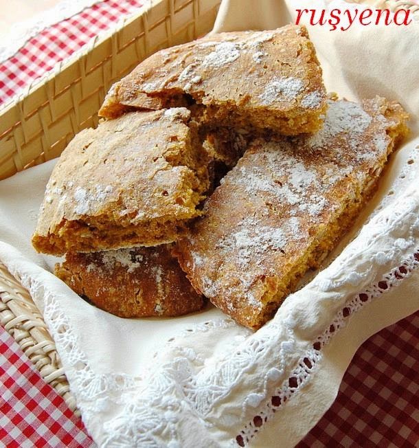 (Kaynak blogdaki tarifle tarifimi karşılaştırdıysanız, görülüyor ki benim tarifimde kuş üzümü ve kimyon tohumu yok... Kuş üzümünü çok sevmeme rağmen ekmeğe yakıştıramadım ve kullanmak istemedim. Kimyon tohumunu ise denemek istememe rağmen bulamadım... Diğer ölçüler ve malzemeler kaynak tarifle birebir aynı.)
