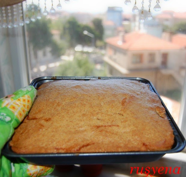 Kare şeklindeki küçük kalıbımda şeftalili kek yaptım. Kap küçük olunca malzemelerin ölçüsünü doğru ayarlayabilir miyim diye endişelenmedim değil... Göz kararı ile yaptığım deneme ilk teşebbüste gayet başarılı oldu neyse ki.